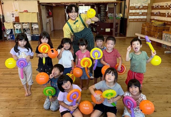 バルーンアートを紹介しながら園児たちと一緒に遊びます。